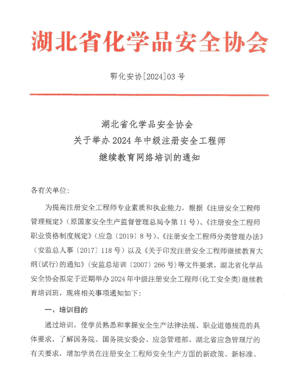 2024年中級注冊安全工程師繼續教育網絡培訓通知